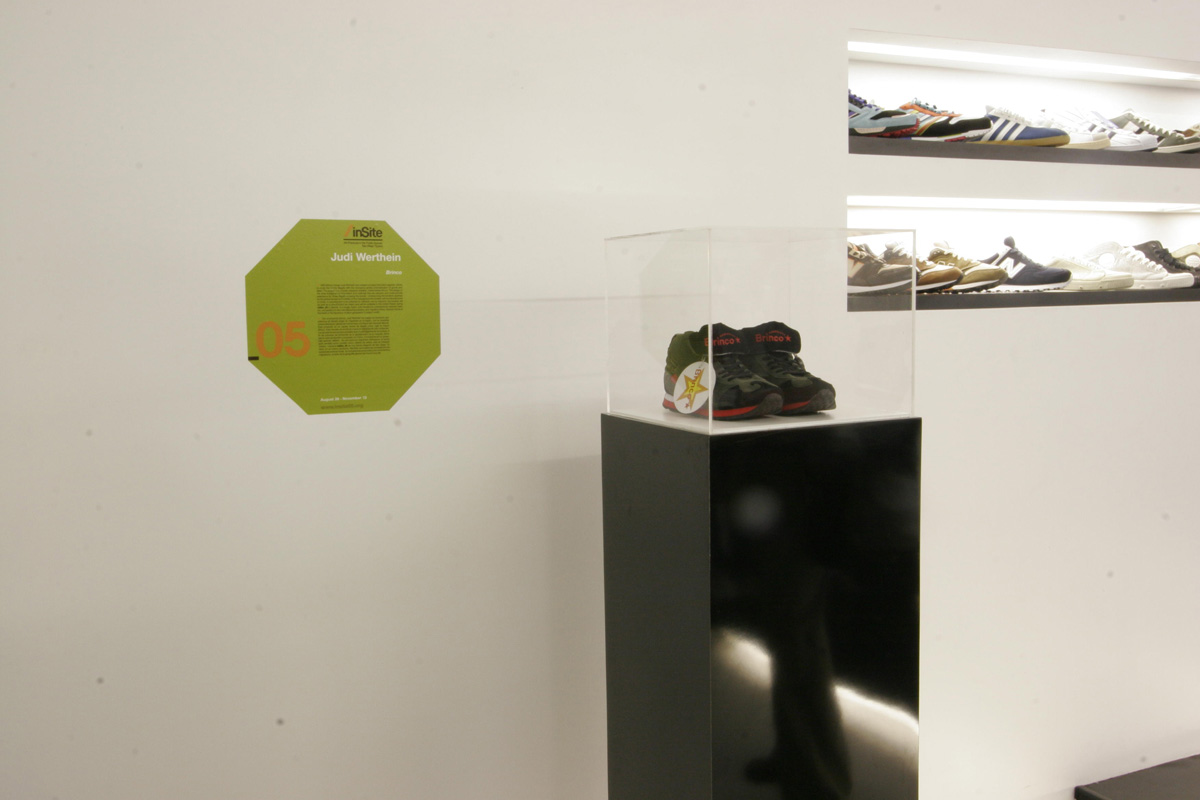 In counterpoint to its potential for utilitarian use by Mexican migrants, the sneaker was sold as a limited edition art object in San Diego (USA) in a high-end footwear boutique that responded to the avid American consumerist culture.