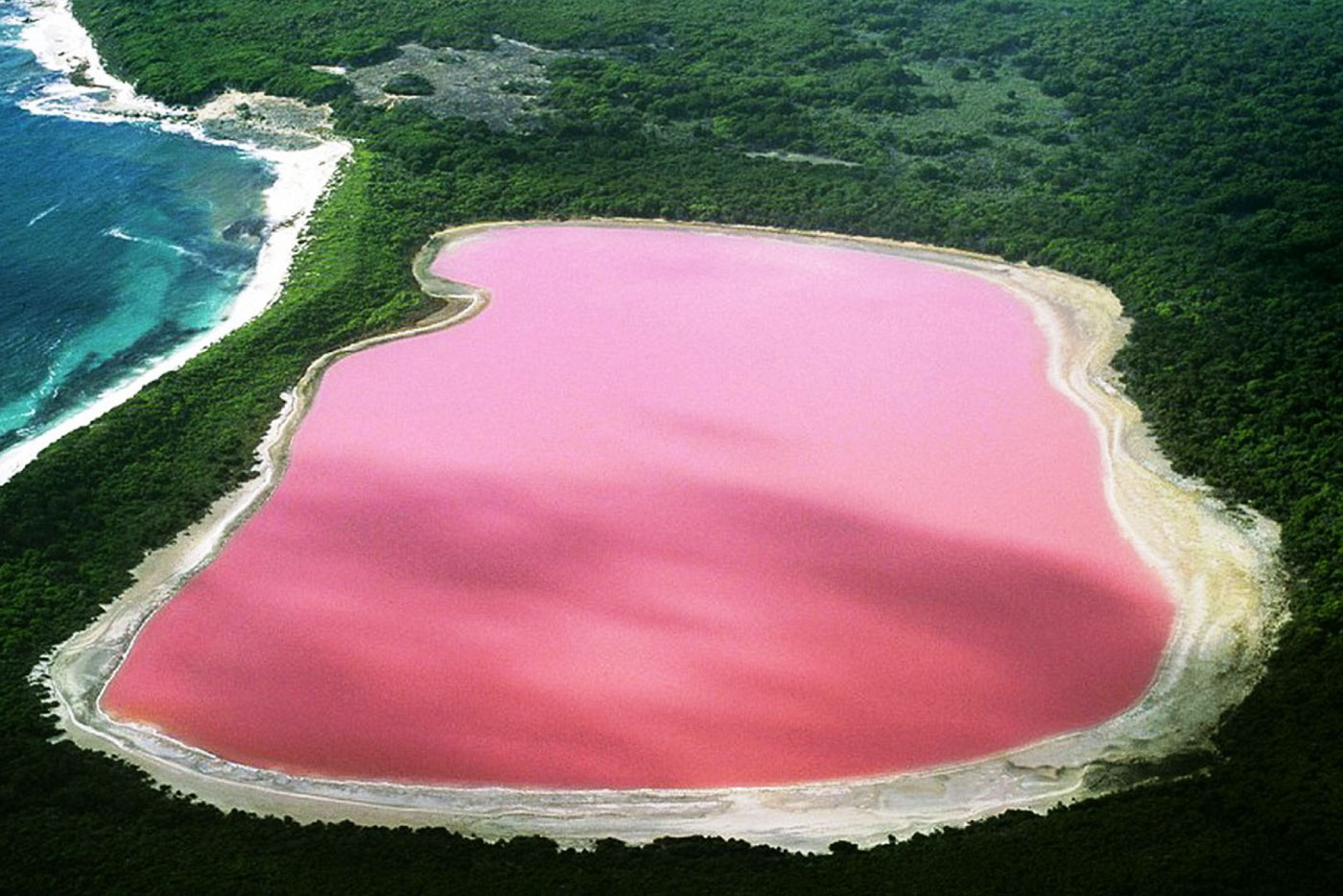 Ubicado en la isla más grande de las 105 que componen el Archipiélago de Recherche, el lago Hillier tiene un color rosado natural (debido a la sal que contiene) y es visitado diariamente por cientos de personas.